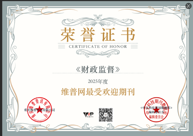 维普网作为国内领先的学术资源服务平台,其年度评选通过自动筛选客观数据,依据下载量、被引用量、影响因子等指标,通过严格的评选流程和多重审核机制,全面覆盖期刊价值的不同维度评估,有着较高的科学性、公正性和权威性。“维普网最受欢迎期刊”奖项旨在表彰在维普网具有较高人气和使用频率的期刊,以年度期刊下载数据排序为核心指标对入围期刊进行评估,共评选出获奖期刊400种,其中自然科学类期刊300种,社会科学类期刊100种。《财政监督》此次获奖,既体现了广大读者对期刊内容价值的高度认可,也反映了期刊在内容质量与传播效能上的持续进步。